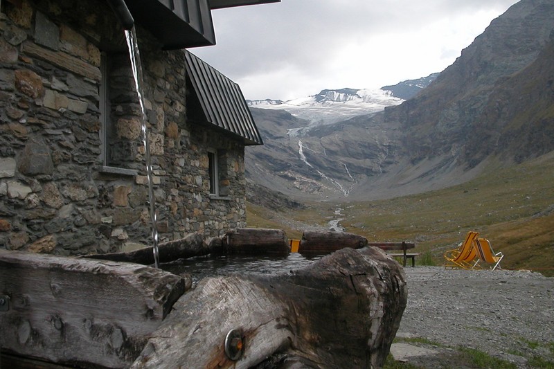 Notre refuge se situe dans un cirque glaciaire : Plattes des chamois, glacier de Vert et de Schuetse.