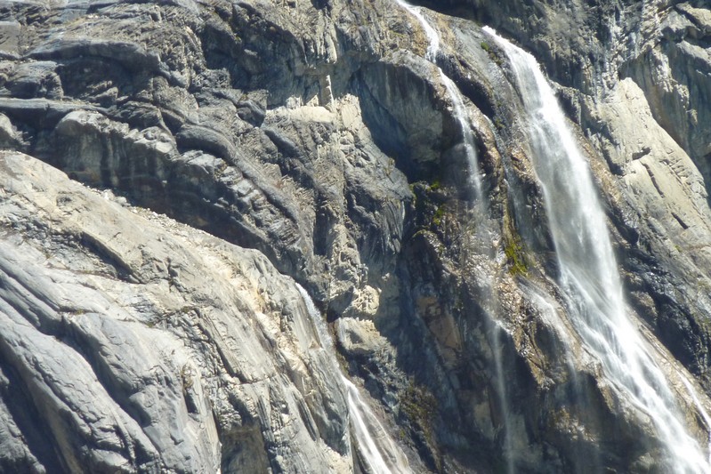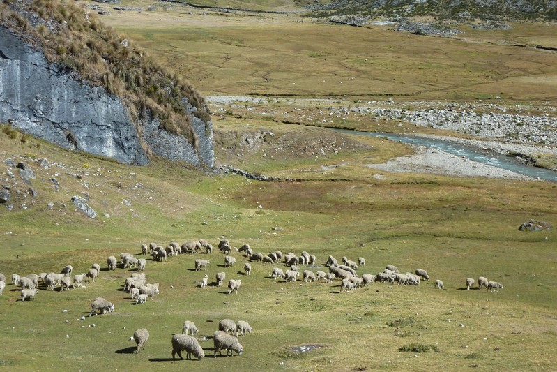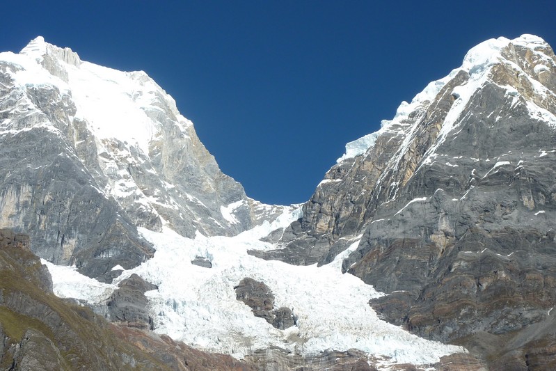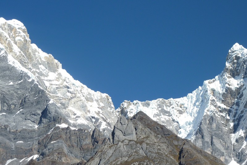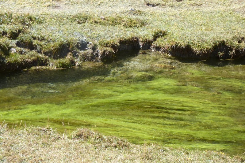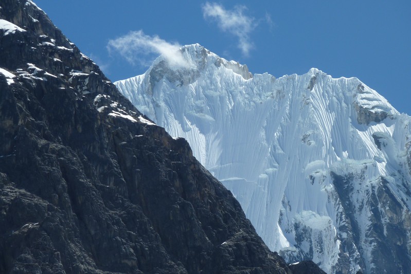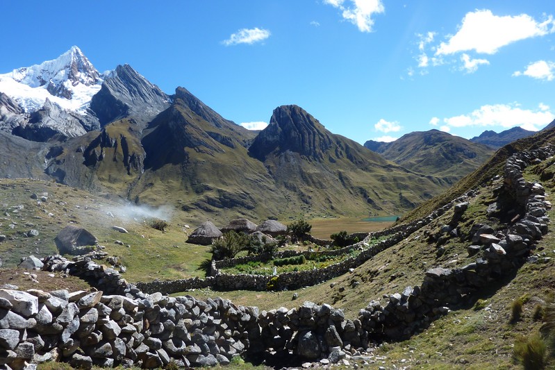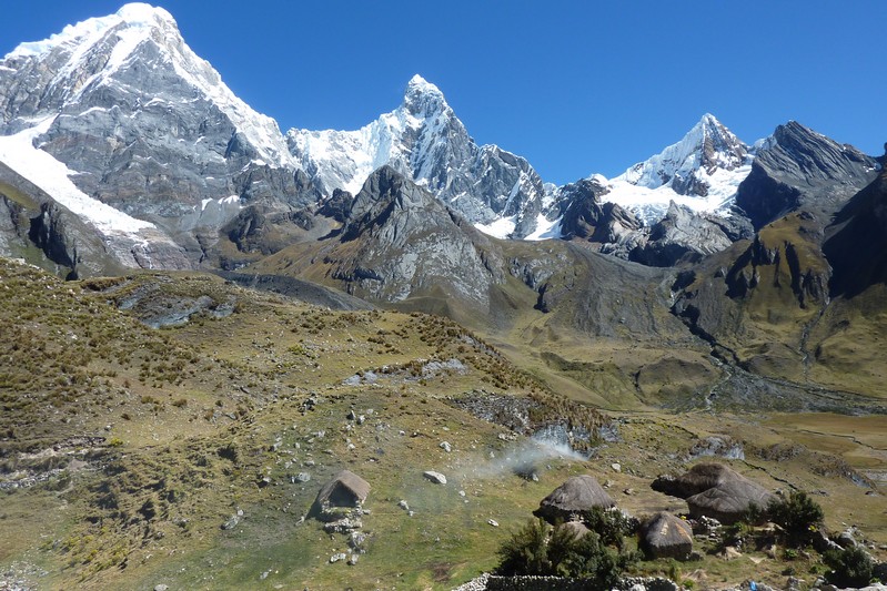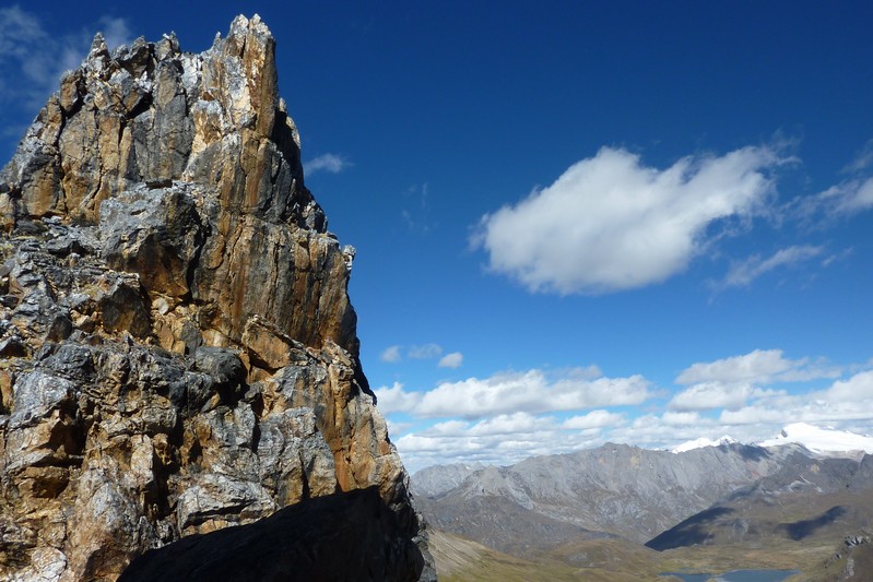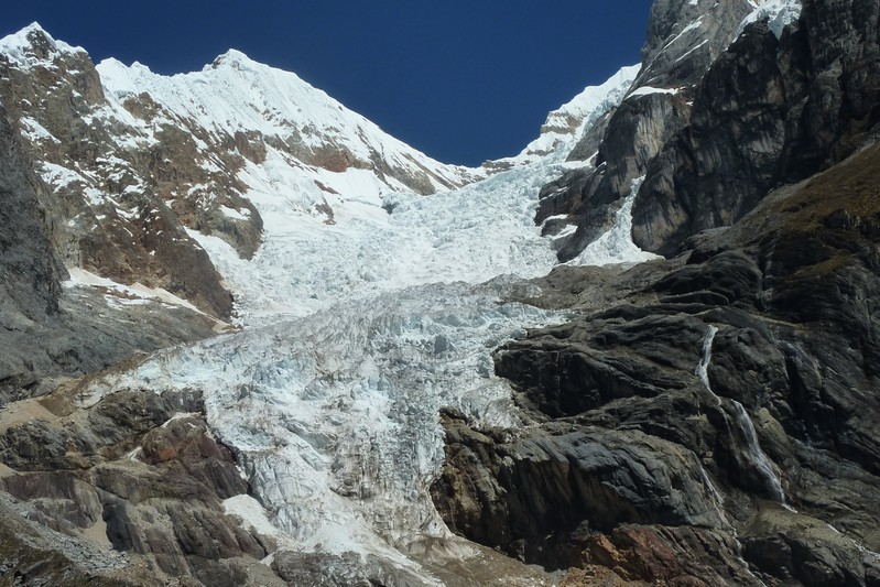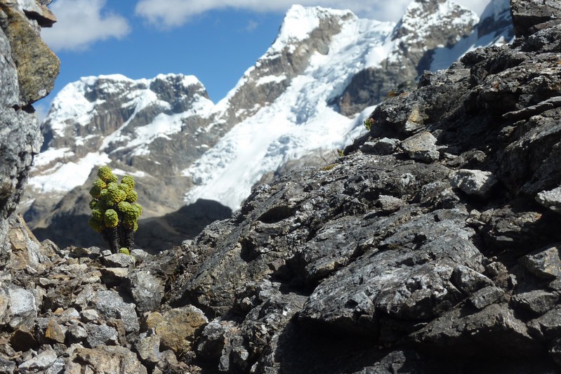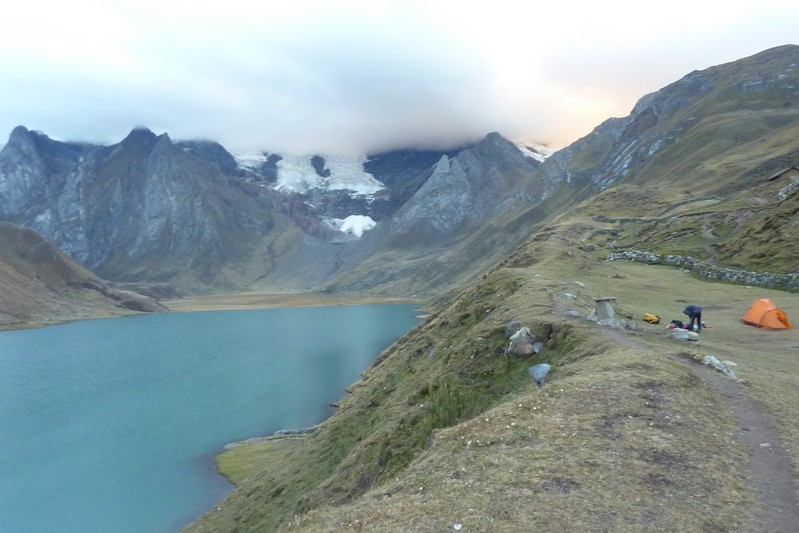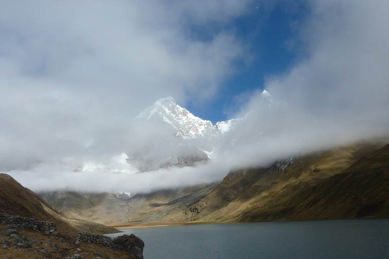 Le parcours est majestueux. On se baigne les pieds dans le torrent gelé... l'eau est limpide et nous fait le plus grand bien. Les lacs sont vraiment beaux (Lacs de Siùla(4300m), Quesillococha(4330m)...), les couleurs oscillent entre le turquoise et le vert, puis vers le rouille et le rouge des sols de zinc, de fer et d'argent. Les croutes neigeuses des sommets forment de magnifiques toits de poudreuse aux crevasses gigantesques. Les séracs, les moraines, les cascades et torrents sont magnifiques et règnent silencieux dans un panorama à vous couper le souffle.