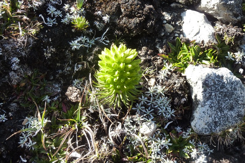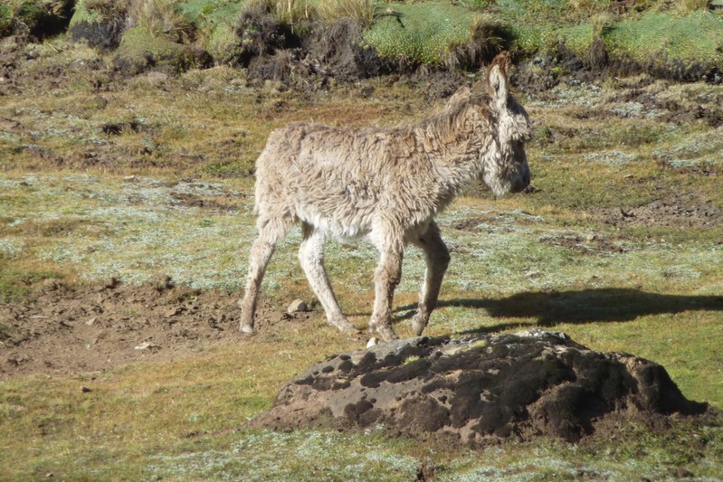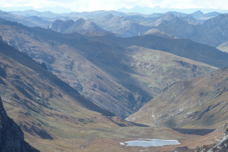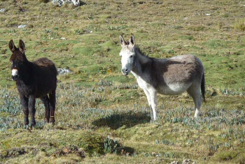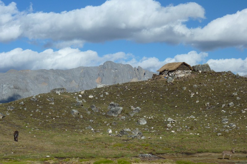 Le passage du col nécessite d'escalader un pierrier et est toutefois hardu du haut de ses 4873 m. Le chemin est encore long jusqu'à Huayhuash... heureusement que nous voyageons légers... Nous sommes au campsite (4350m) vers 17 heures où le paysan et son burro nous attendent. Encore une fois, le camp est vide. La température est de zéro degrés, la tente est vite montée et la soupe chaude du soir nous fait du bien Je suis un peu déçu...je pensais que cet endroit, portant le nom de la cordillère, aurait un charme particulier...ce n'est pas le cas...rien de nouveau..