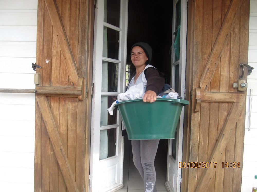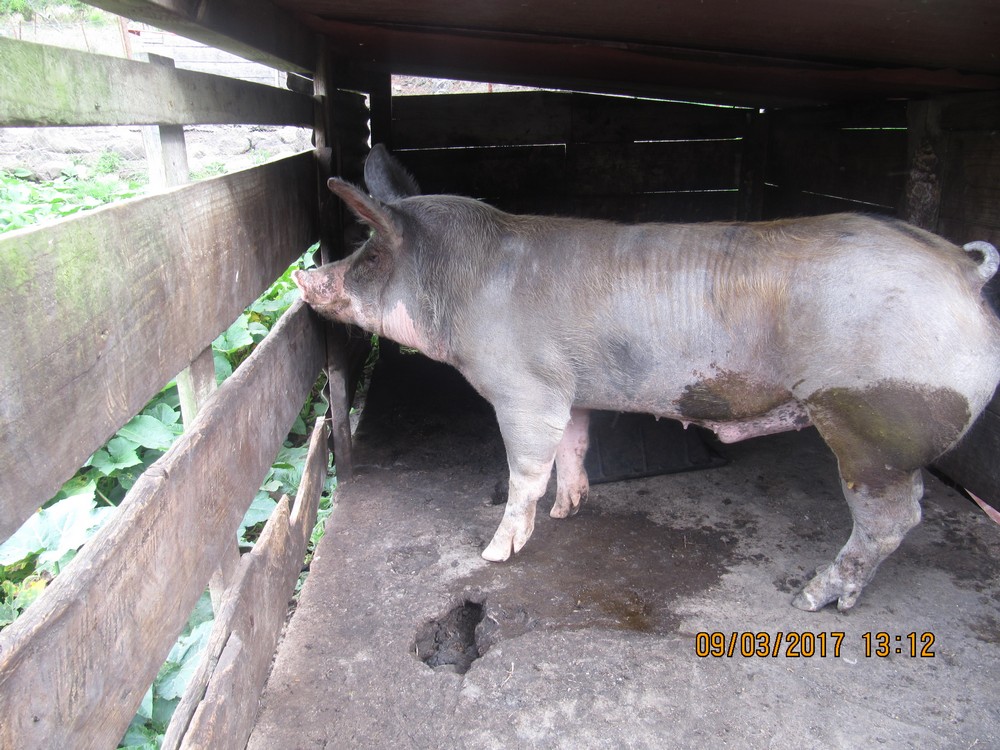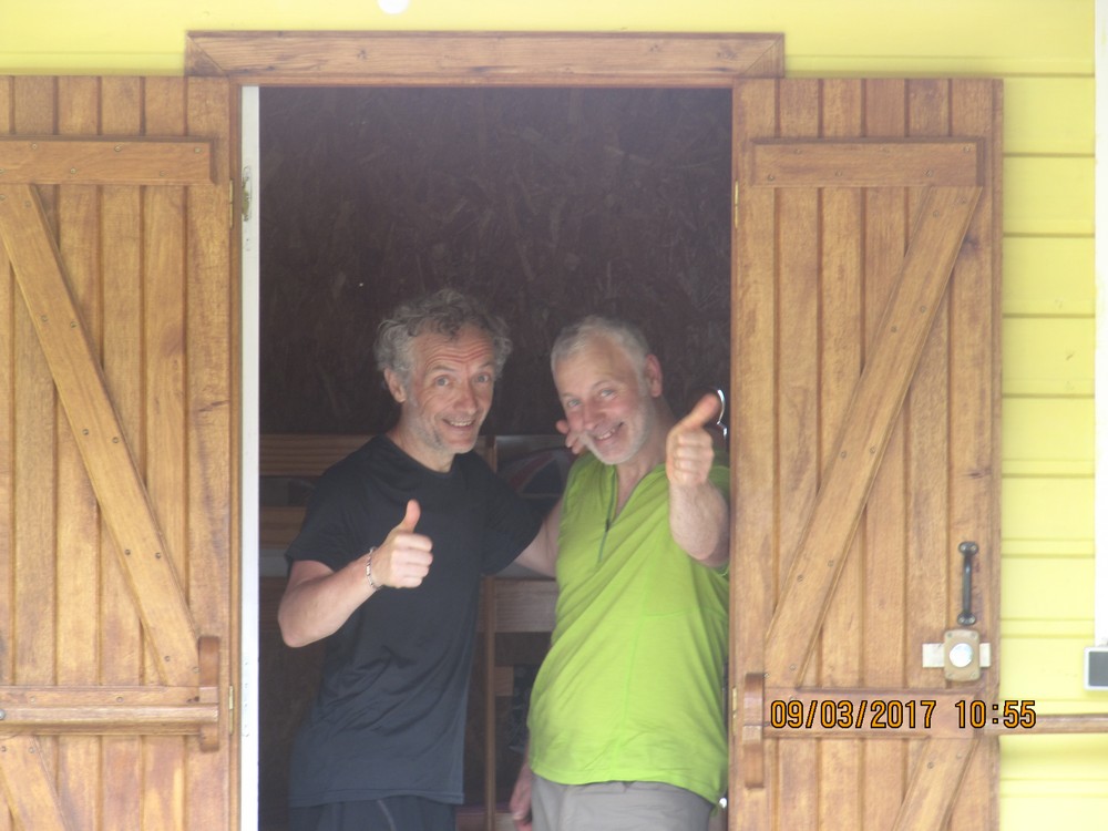 Le village est sympathique avec de beaux petits chalets en bois jaunes et rouges. Arrivée vers 13 heures au gîte de Fanélie. La basse court est accueillante avec ses cochons et ses volailles.
