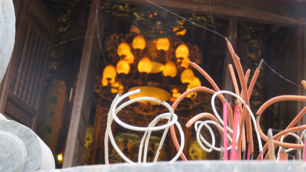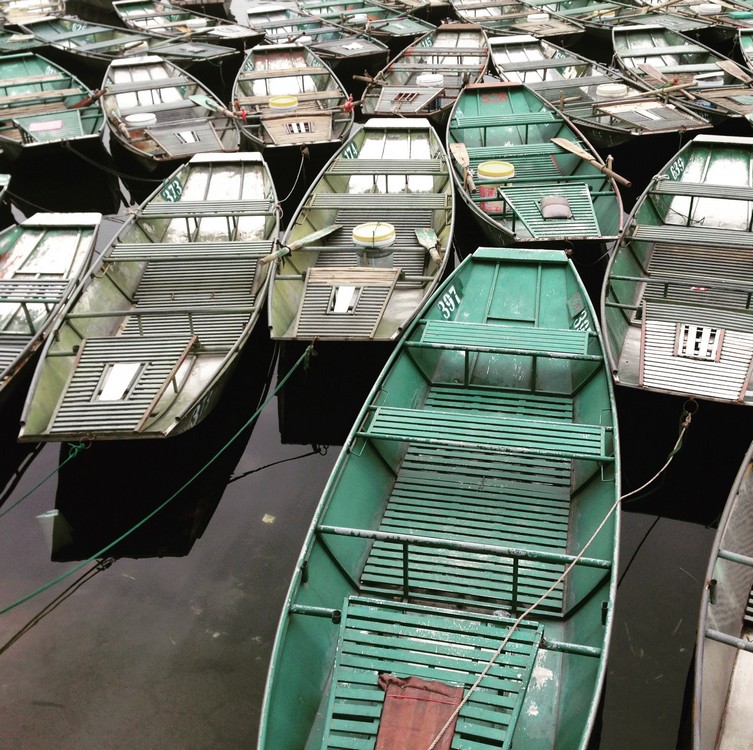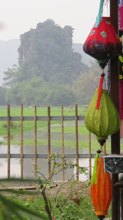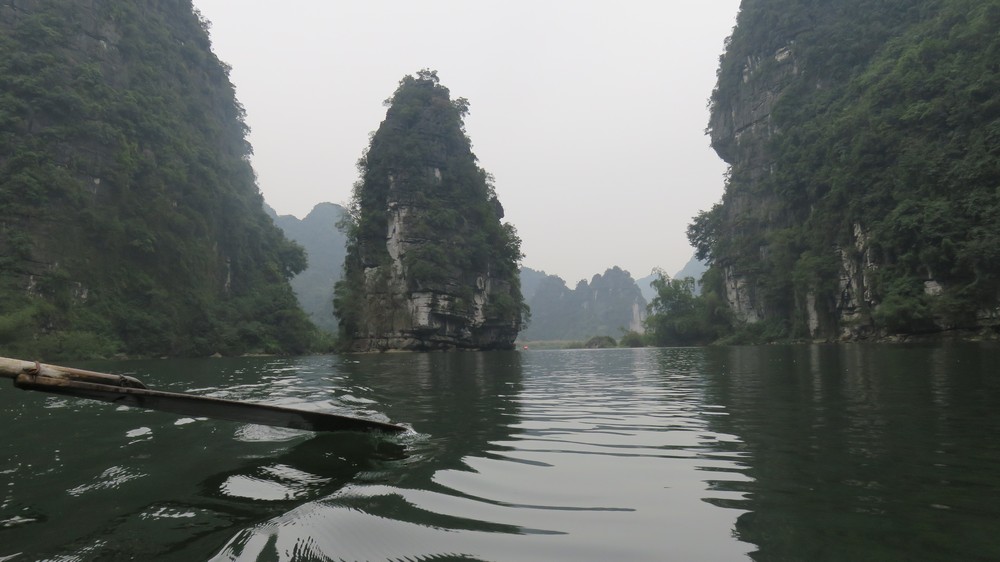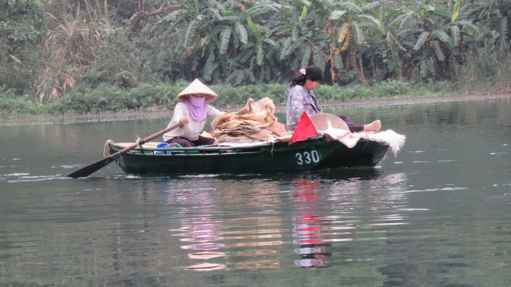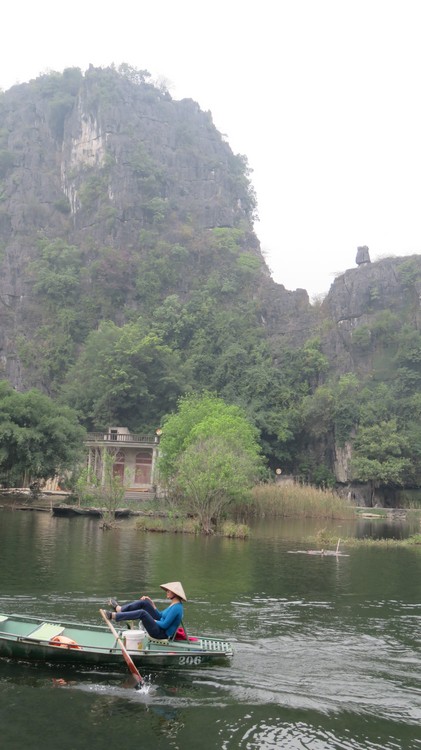 Le lendemain, promenade en barque (on y rame avec les pieds) dans Tam Coc. Même si je ne suis pas dans la bonne saison, la sereinité dans la Sun Valley est toujours perceptible et on prends plaisir à se laisser aller au fil de l'eau.