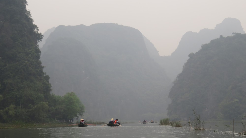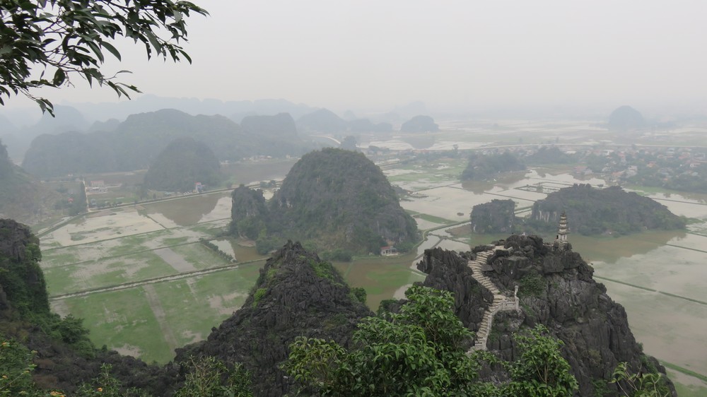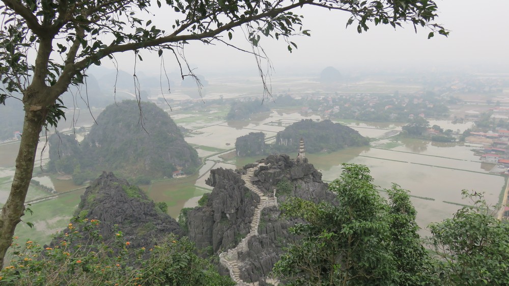 Tout d'abord, visite de Trangan (Trang An est la baie d’Halong terrestre, un paysage envoutant de rochers abruptes s’échappant de la brume des forêts et des rivières, des rizières et grottes parcourues en barque au rythme lent des rameuses), puis visite de la pagode Bai Dinh (temples bouddhistes de la montagne de Bai Dinh), et de l'ancienne capitale Hoa Lu (Capitale du Vietnam sous la dynastie des Dinh) pour terminer avec la visite de Mua Cave (montagne du dragon) avec ses splendides panoramas à 360 degrés, ses 500 marches à gravir, son ambiance sereine en parfaite harmonie avec la nature environnante..