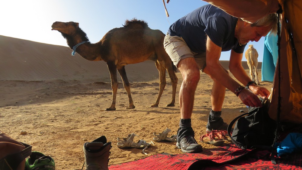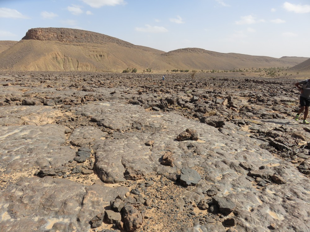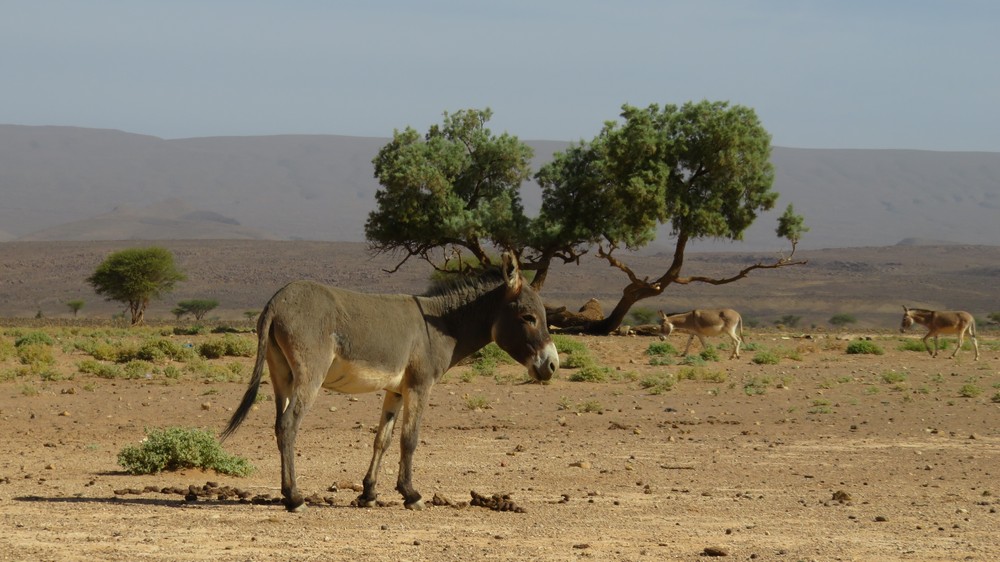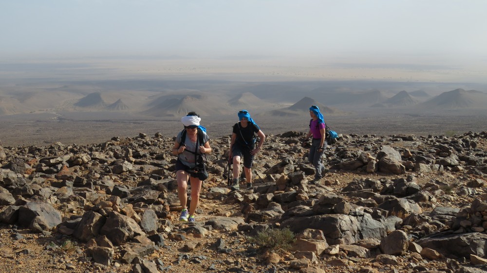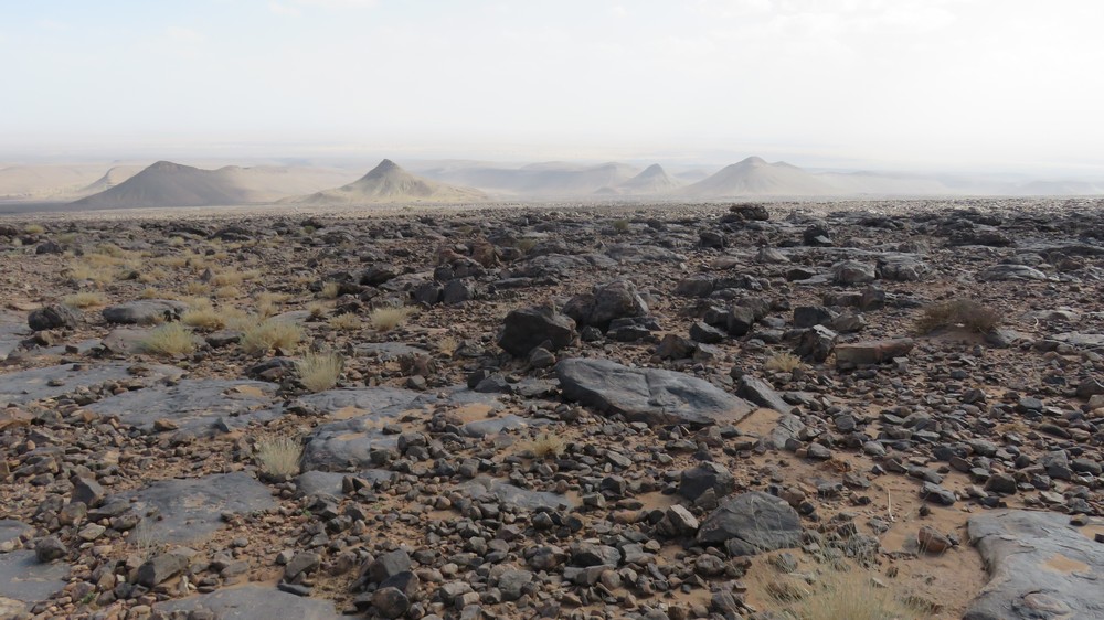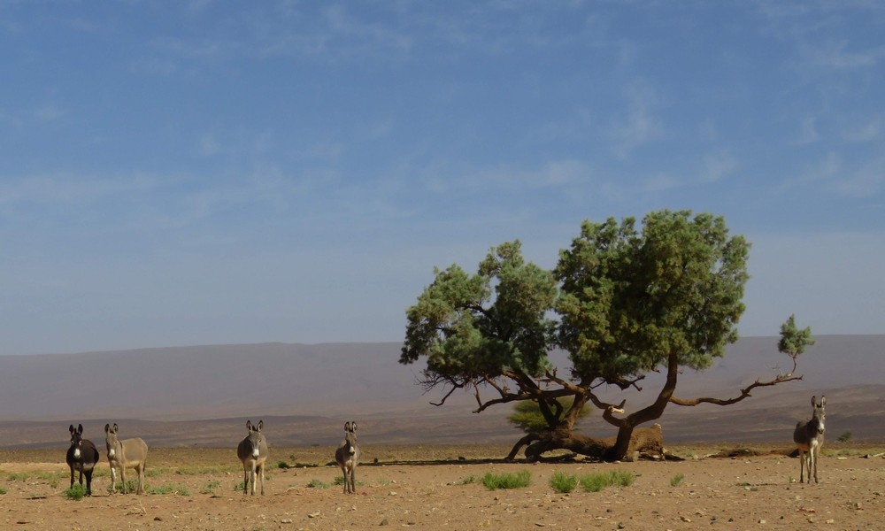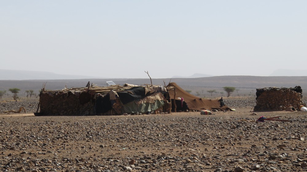 Départ tranquille sur les barcanes à la rencontre d'un paysage très changeant aujourd'hui. Nous quittons le sable pour la roche et la steppe en passant par les gorges Achguig (signifie 'la faille'). Nous croisons sur notre route les ânes sauvages et les camps de nomades.