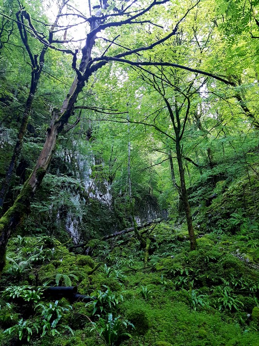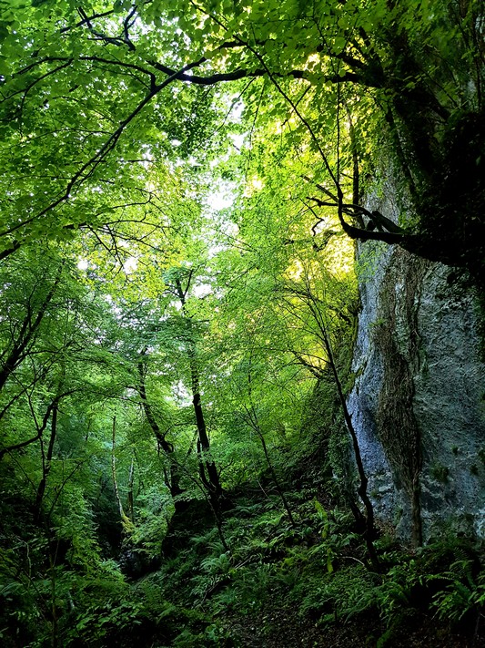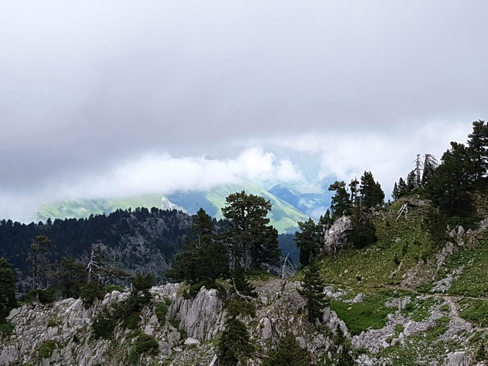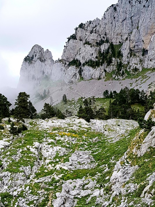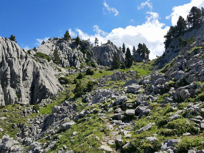 Suite à ce court moment de repos crispé, je repars sur le sentier qui sillonne de belles gorges et remonte vers la forêt jusqu'aux cabanes.