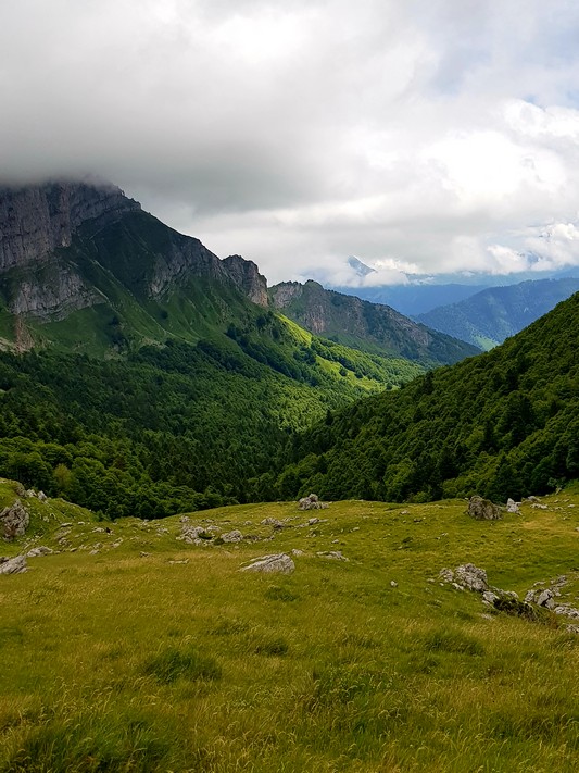 Une fois sur les hauteurs, la marche devient bucolique dans les pierrets jusqu'à redescendre finalement progressivement