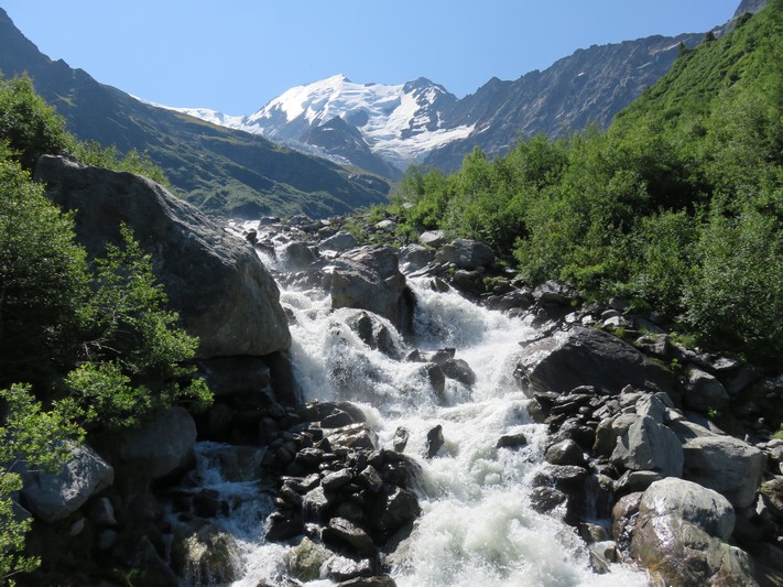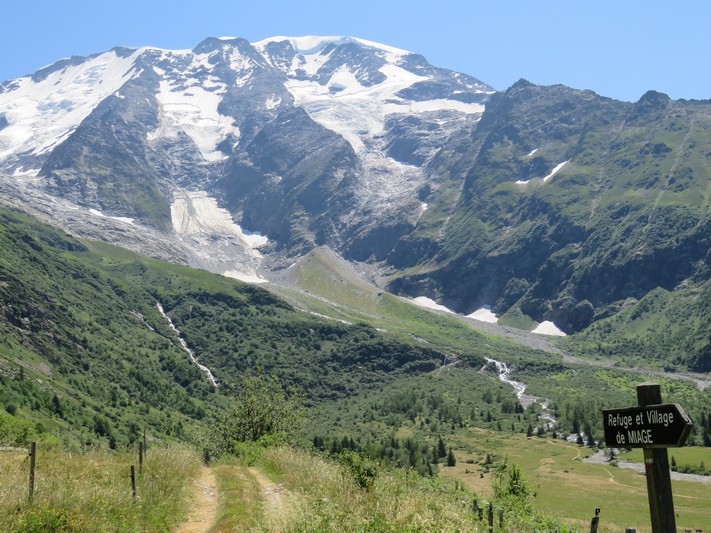 Le passage par les chalets de Miage est sympa aussi et je peux faire le plein d'eau fraiche à la fontaine..