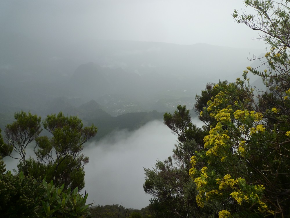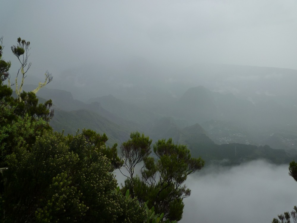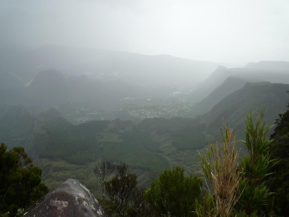 du panorama au lever du soleil. Mais il a plu toute la nuit et il pleut encore trés fort.. la visibilité est nulle.