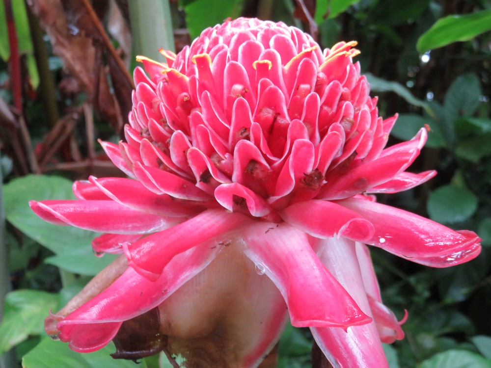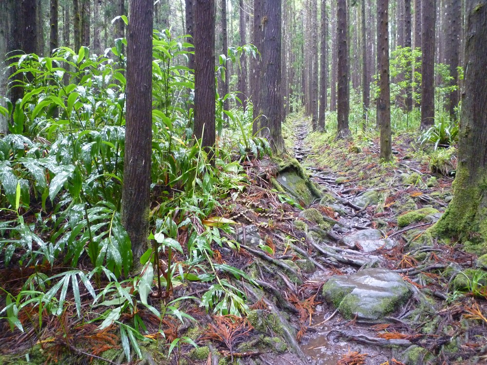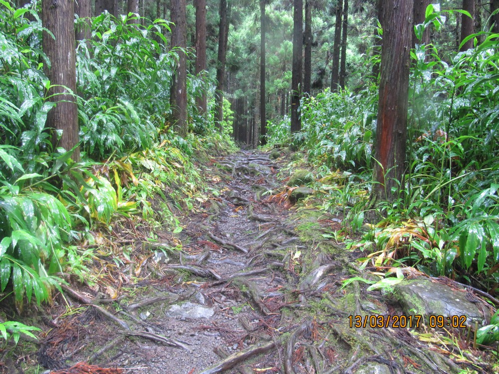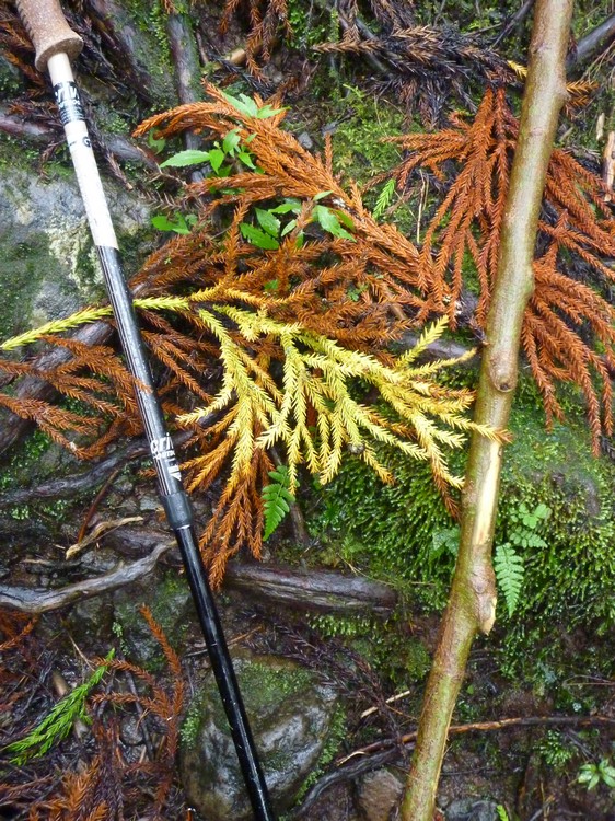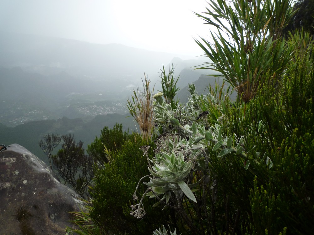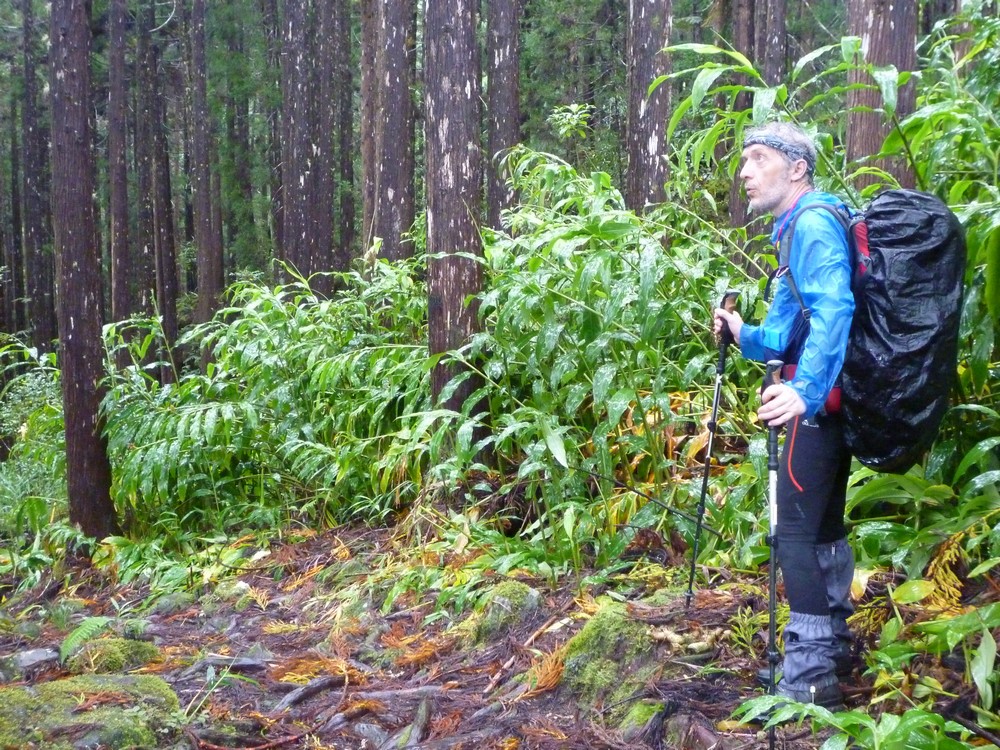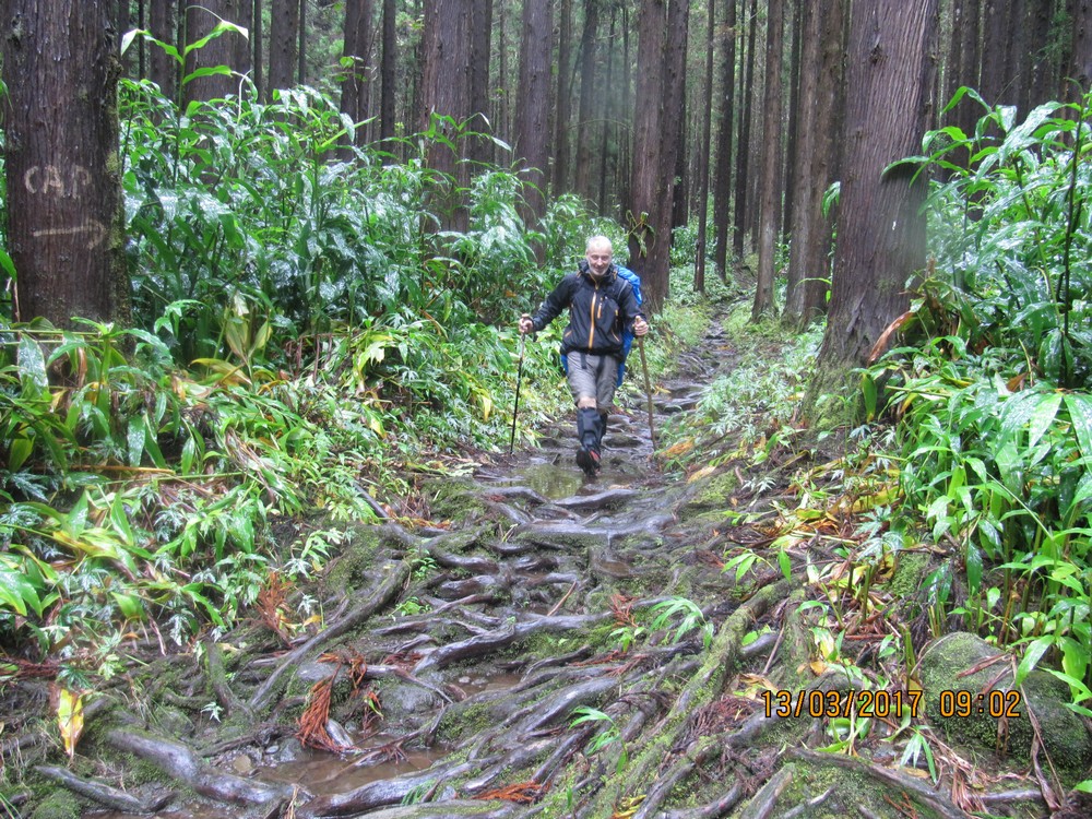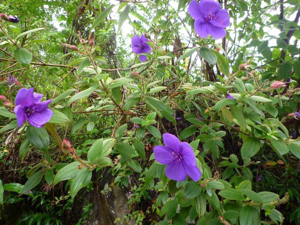 La végétation est trés dense et gorgée d'eau..Cet itinéraire s'avère dangereux, car il nous faut emprunter le chemin sur les roches glissantes et de trés nombreuses