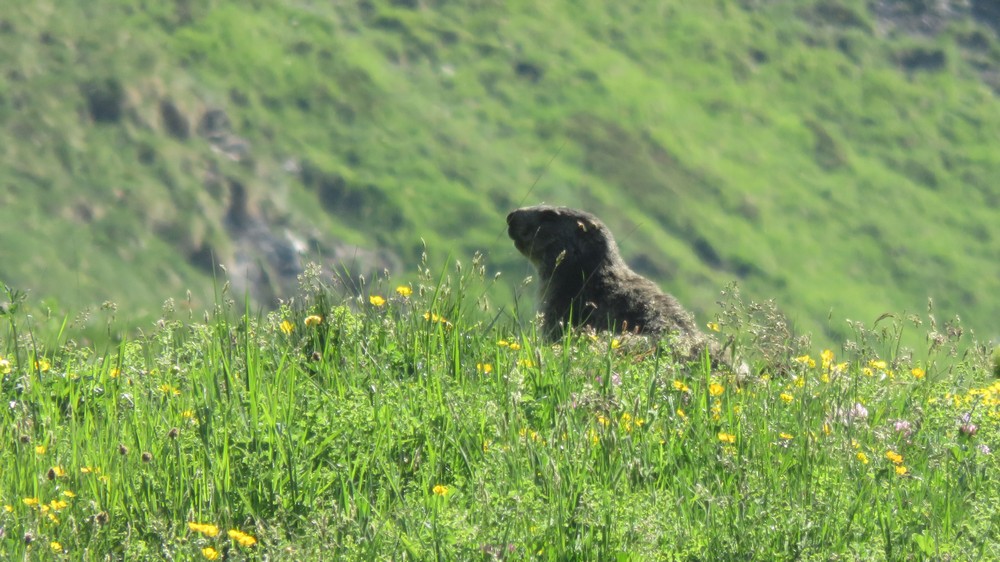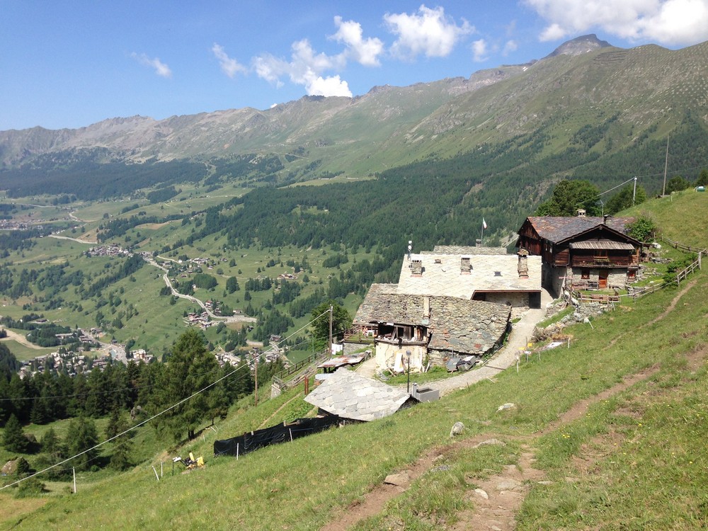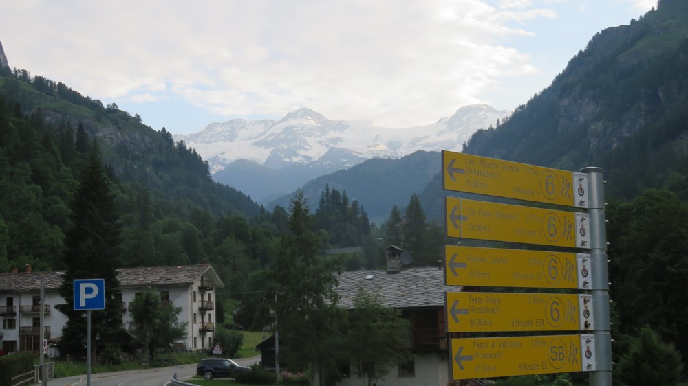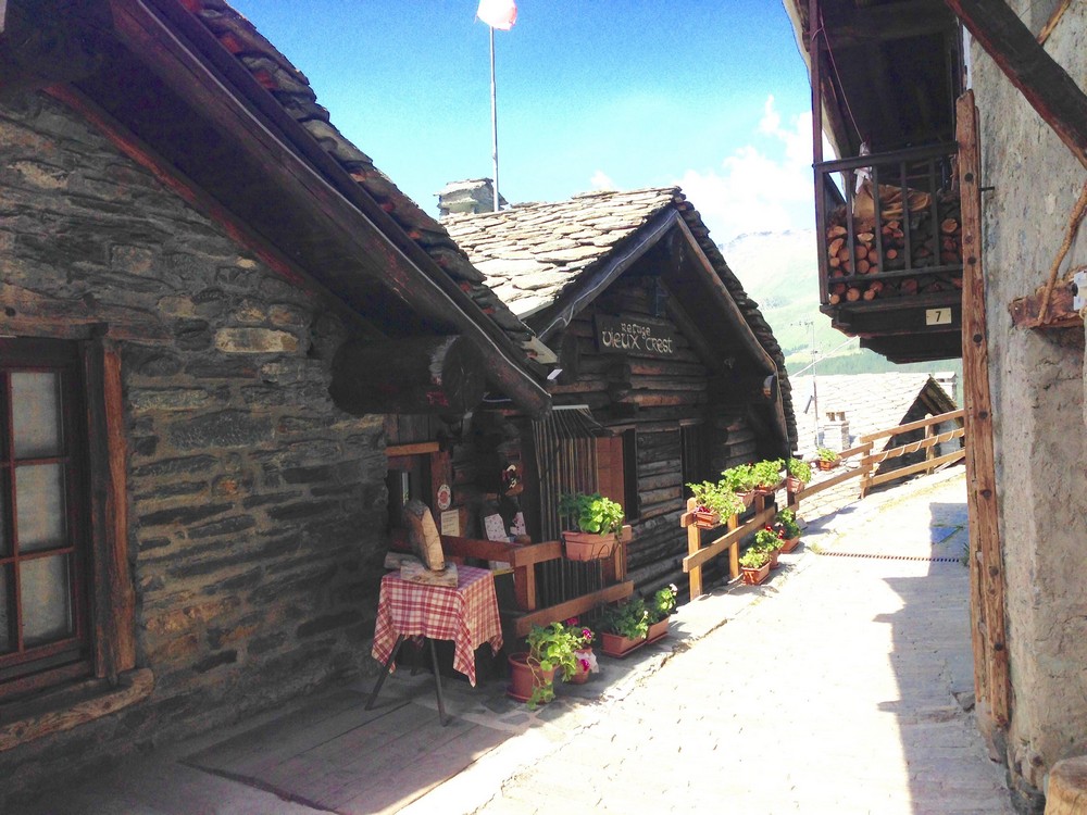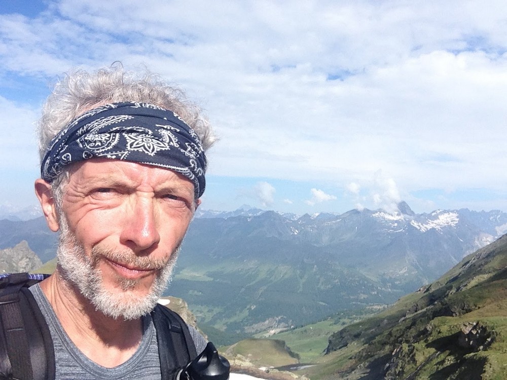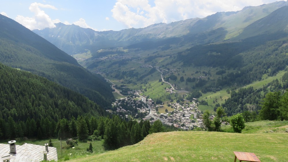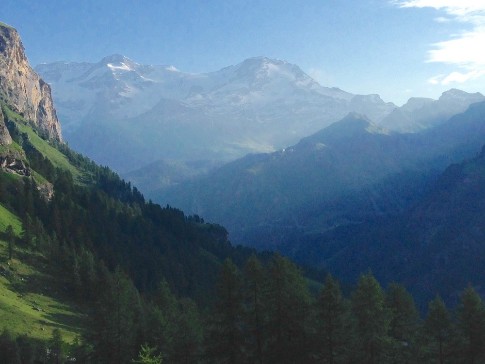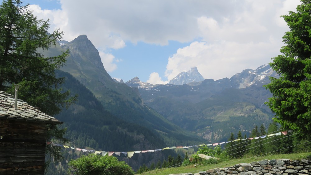 Les sapins sont présents jusqu'à 2200 m puis je prends la direction du col Pinter (2777 m) que j'atteins à 9 h par un sentier assez rude mais sans neige. L'autre versant offre un beau panorama avec quelques névés gérables. Le début de la descente est abrupte puis c'est avec douceur que je parviens au refuge 'Vieux Crest' à 11 heures.