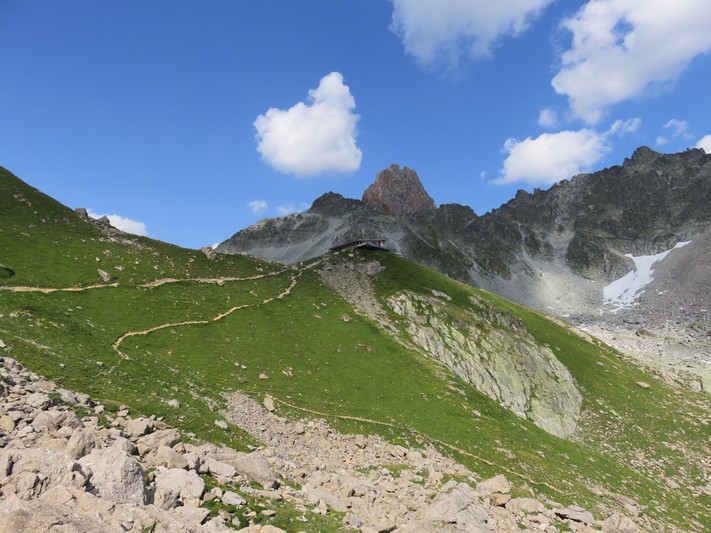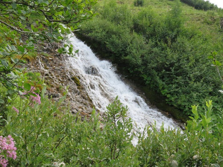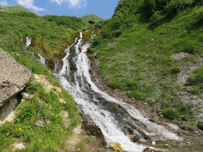 Petite halte au refuge du plan de la Lai (1818 m) en terrasse.