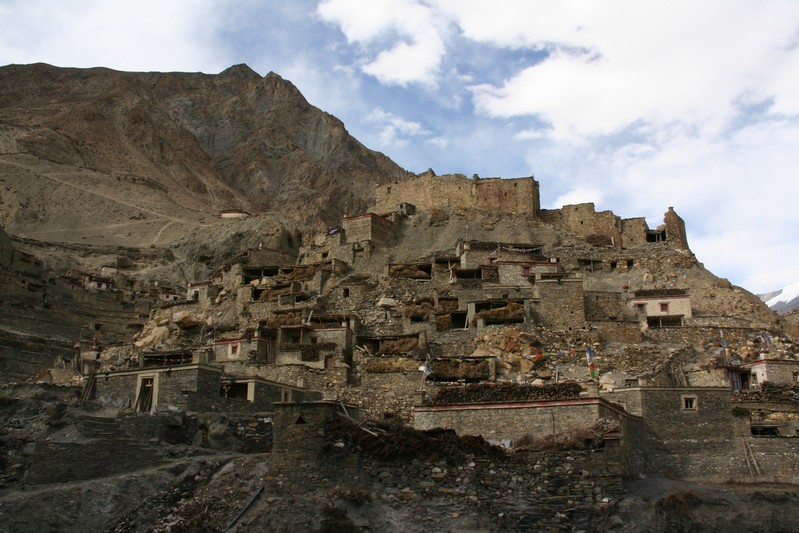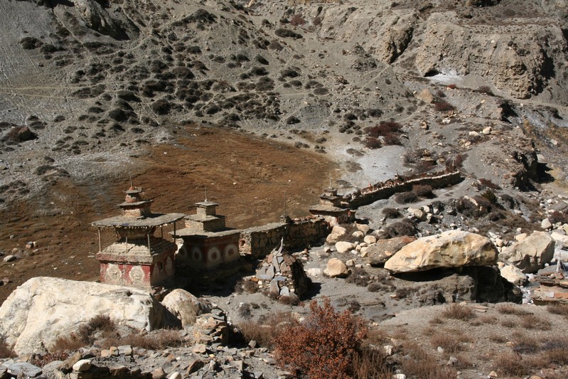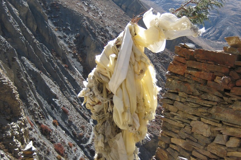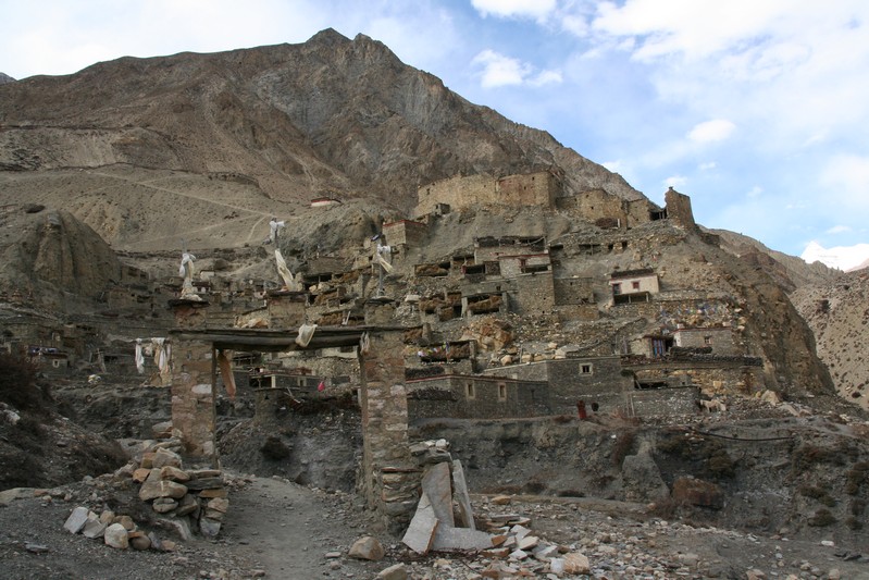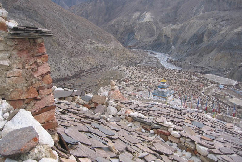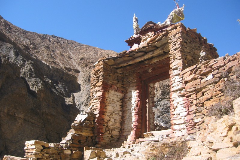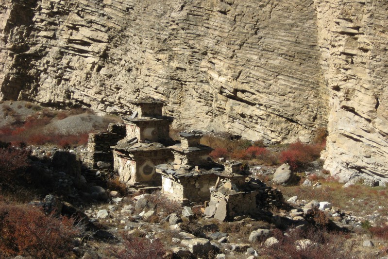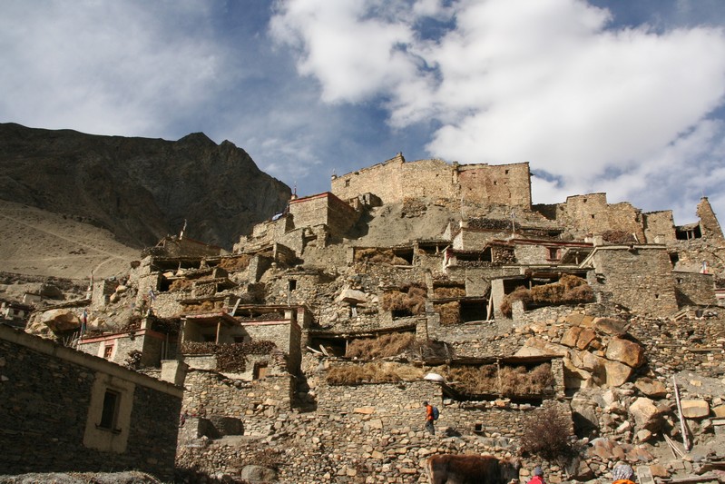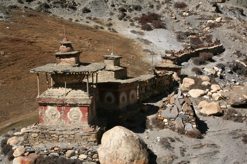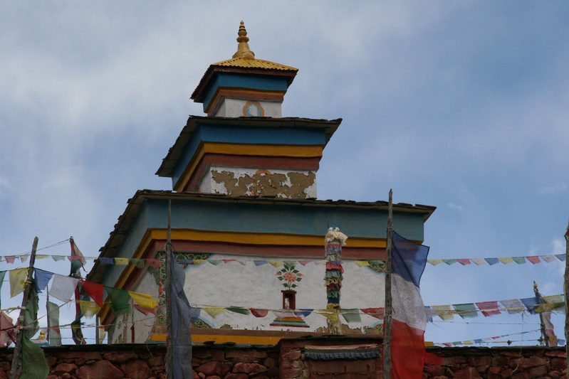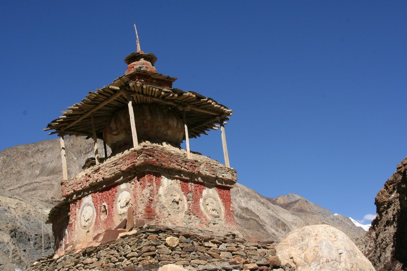 De nombreuses stupas et shortens sont sur notre chemin. Il n'y a pas de doute : nous nous trouvons en région bouddhiste ! D'anciennes demeures en ruine dominent haut perchées notre route et témoignent d'une présence humaine jadis dense dans la région.