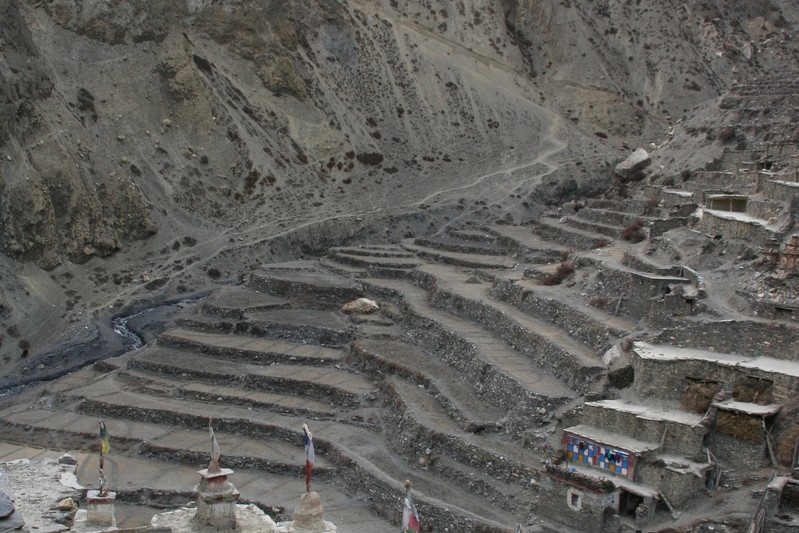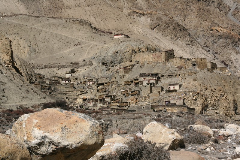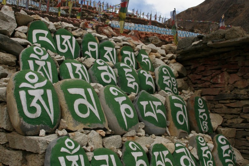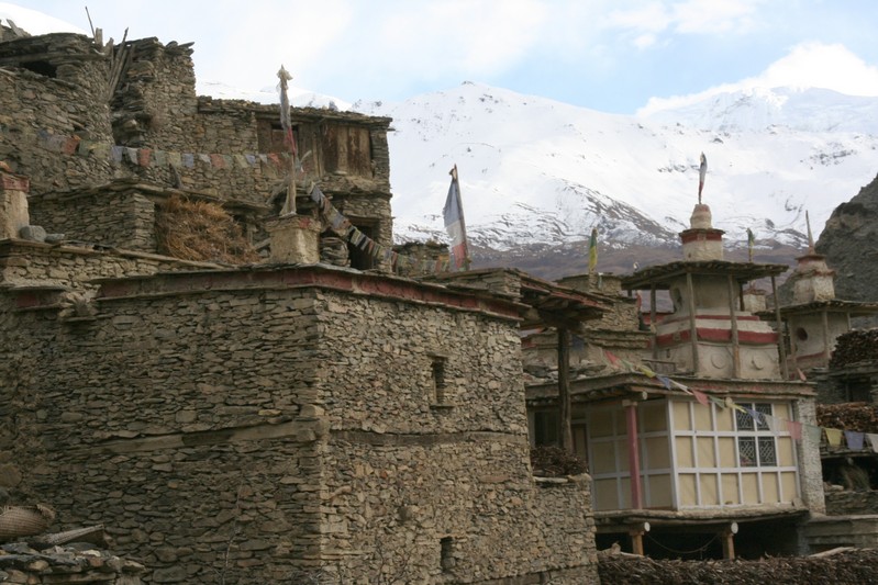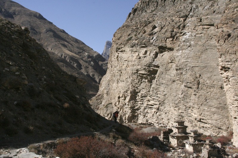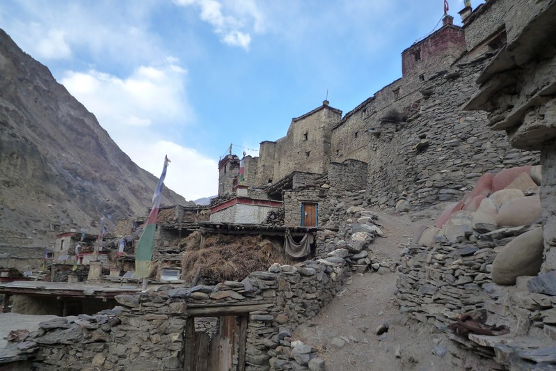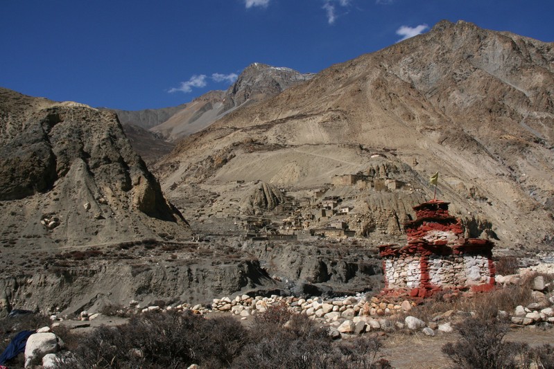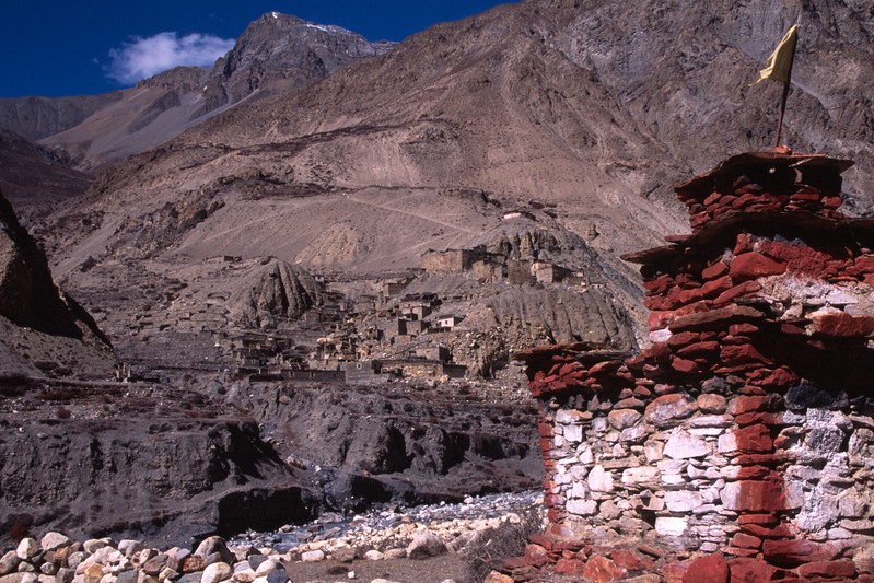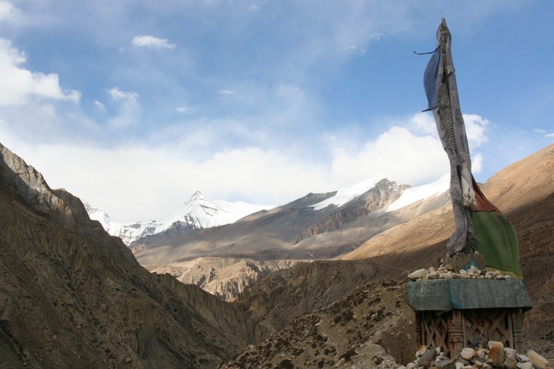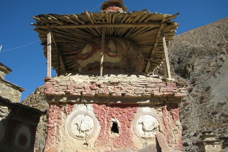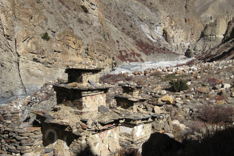De nombreuses stupas et shortens sont sur notre chemin. Il n'y a pas de doute : nous nous trouvons en région bouddhiste ! D'anciennes demeures en ruine dominent haut perchées notre route et témoignent d'une présence humaine jadis dense dans la région.