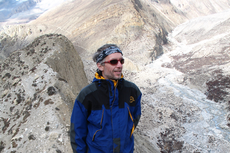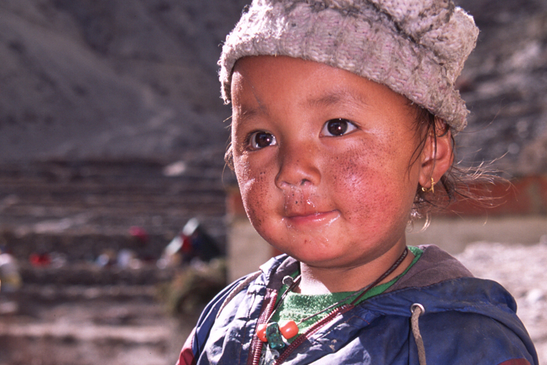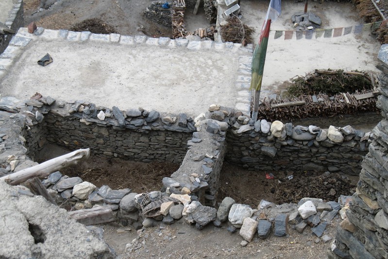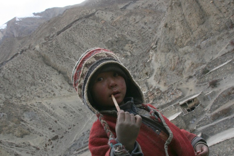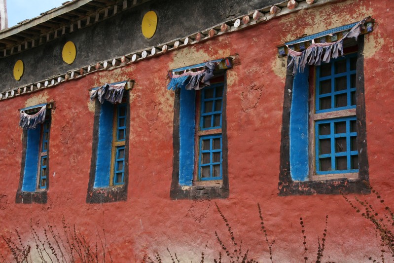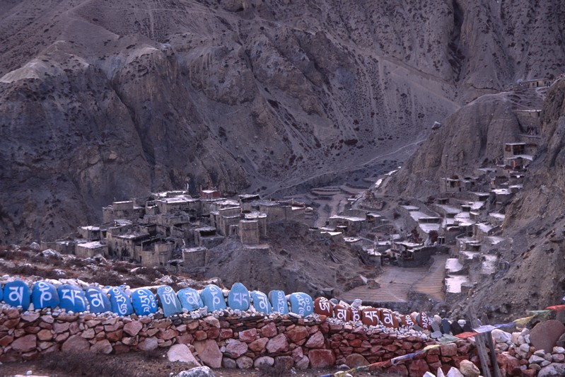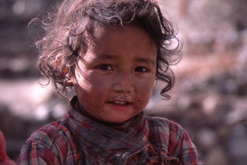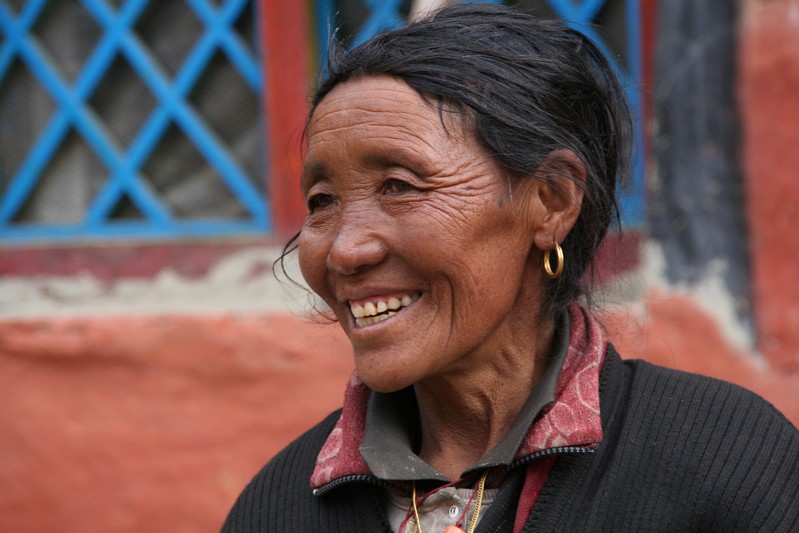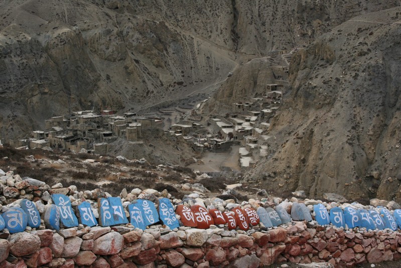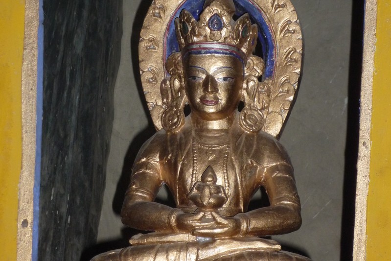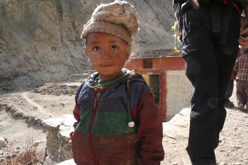 Je déguste ma première tasse de thé népalais (au beurre de yack) dans la cour du monastère qui surplombe le village. Celui-ci est trés coloré et nous sommes trés chaleureusement accueillis. Il se situe face au village, vers 4155 m. Le lama est absent aujourd'hui.