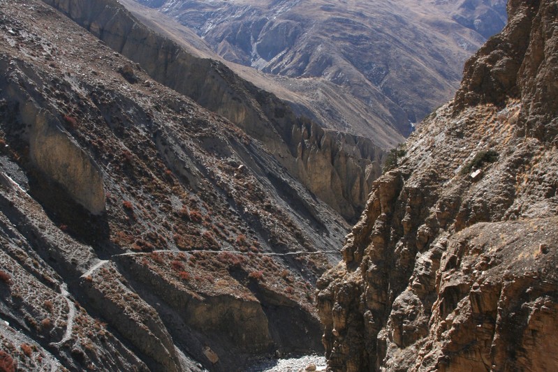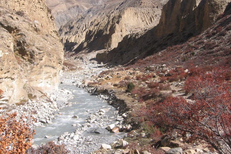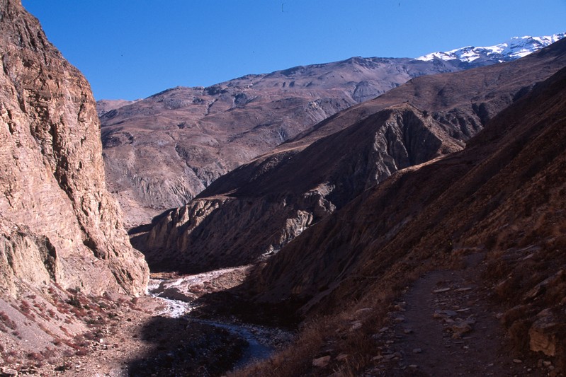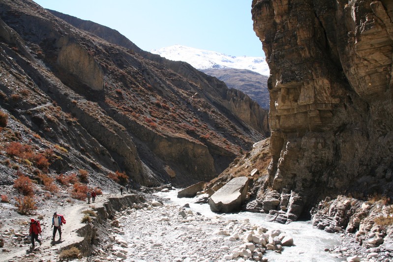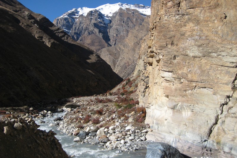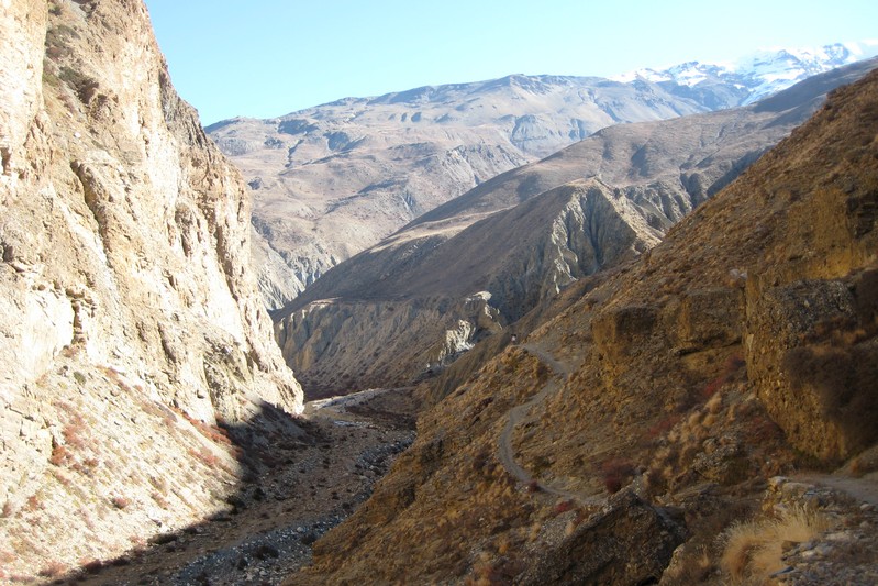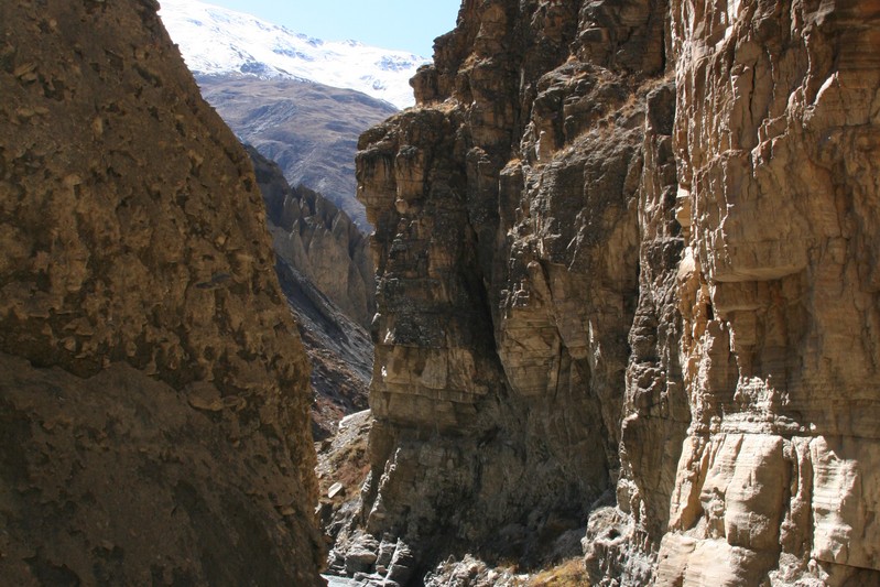 Les gorges sont vraiment splendides et les montagne enneigées qui les entourent sont grandioses. Les couleurs des roches éclatent au soleil vif de midi.