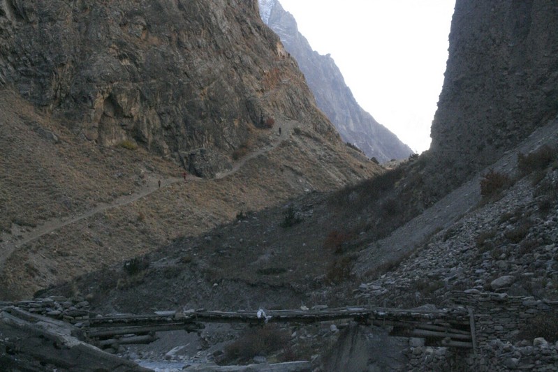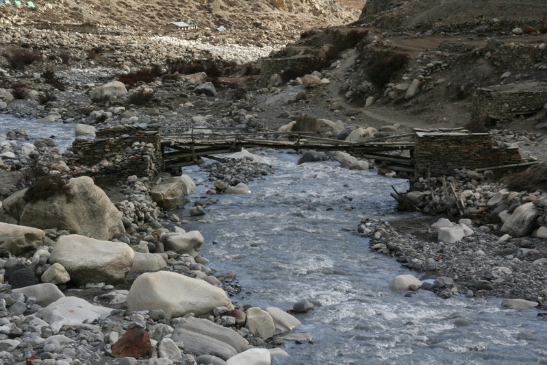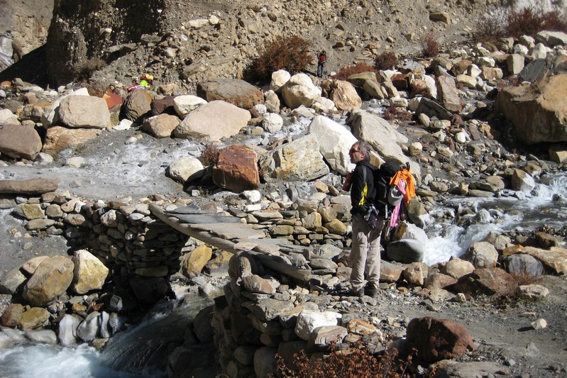 Il faut s'habiller chaudement avant de reprendre notre route car le vent glacial nous accompagne tout au long du torrent !