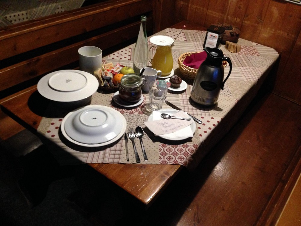 Un super petit déjeuner perso m'attends à 5 h 30 et je fais vraiment le plein d'énergie ! Cette nuit la pluie à rafraichi le climat et me voilà à nouveau sur le chemin. L'altavia 1 est mal indiquée et poursuivre après les refuges Ferraro et Guide de Frachey n'est pas tâche facile. Je fais probablement plus de distance que prévue.