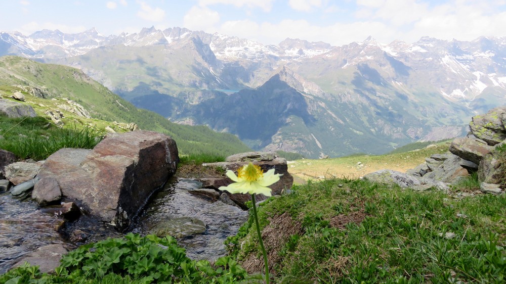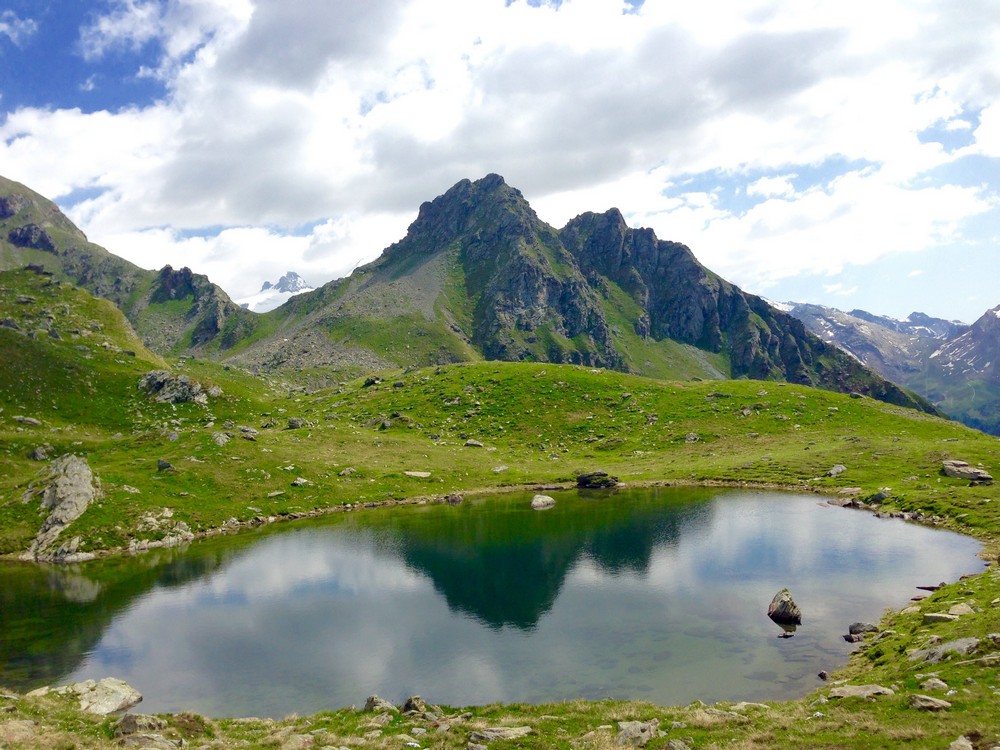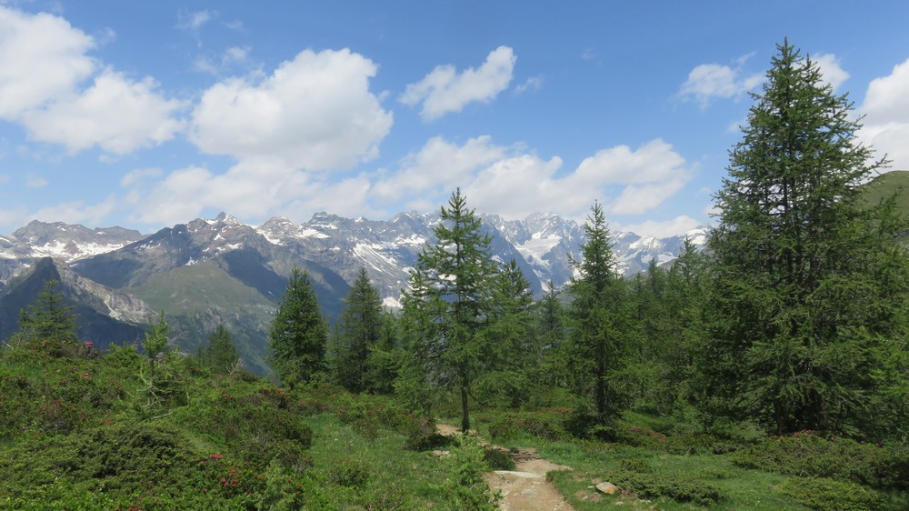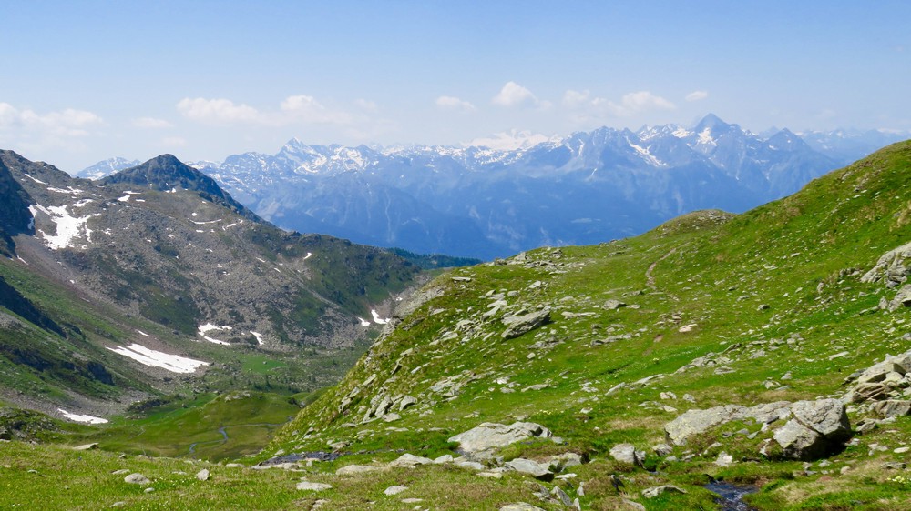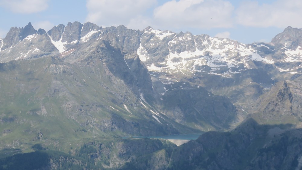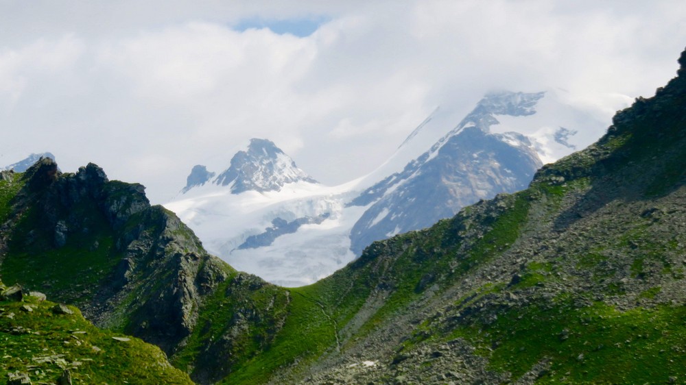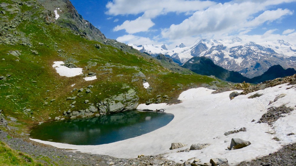 Arrivé au refuge du Grand Tournalin vers 10 h 30 (2535 m). Le col Nanaz (2773 m) se trouve face à moi et j'y suis vers 11h 30 pour une halte déjeuner. Un bel endroit pour s'arrêter quelques instants et profiter du magnifique panorama sur le Mont Rose !
