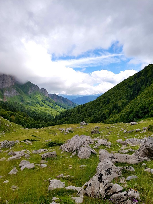 Une fois sur les hauteurs, la marche devient bucolique dans les pierrets jusqu'à redescendre finalement progressivement