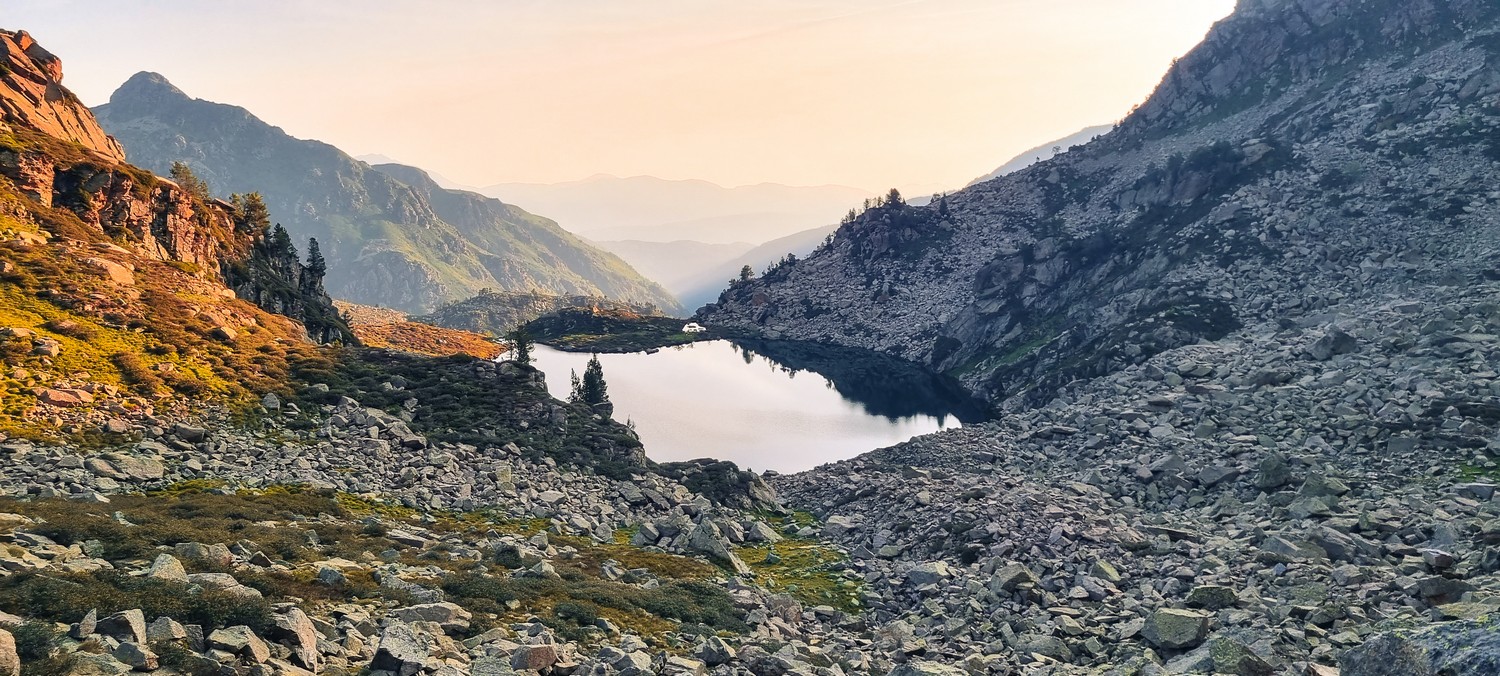 En quittant le refuge, très vite, le sentier s'avère pierreux. Marcher à travers et sur les rochers est vite pénible.